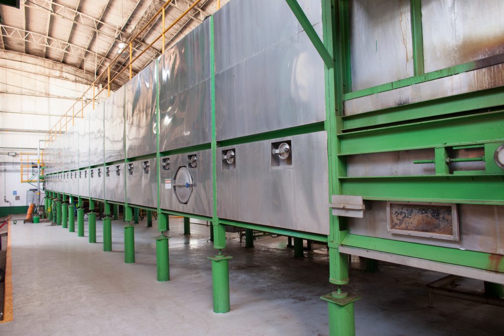 The diffuser is a machine about the size of a basketball court that inverses the traditional tequila-making processes in the name of efficiency. Instead of cooking first, and then separating the sugars from the fibers, a diffuser extracts the starches (inulin) first, using blasts of high-pressure water as agaves pass by on a conveyer belt. The cooking process happens later, if at all.